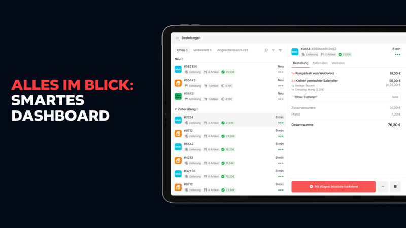 Du erkennst Bestseller, Spitzenzeiten und Plattform-Performance viel einfacher und triffst fundierte Entscheidungen für Menü, Preise und Einsatzplanung