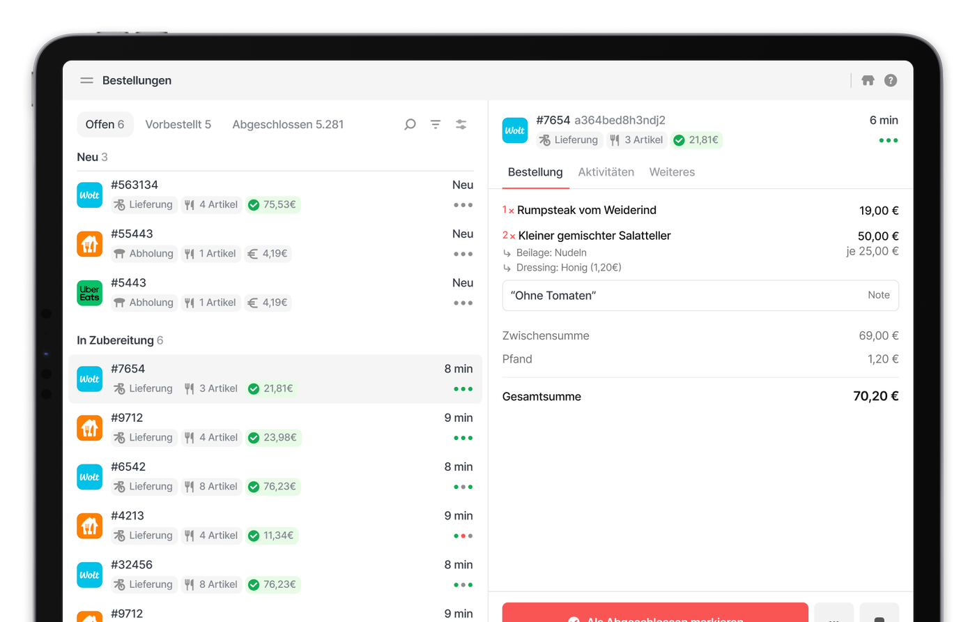 Schluss mit dem Abtippen von Tablets. Ob Webshop, Lieferando, Uber Eats oder Wolt: Jede Bestellung landet vollautomatisch in deinem Kassensystem